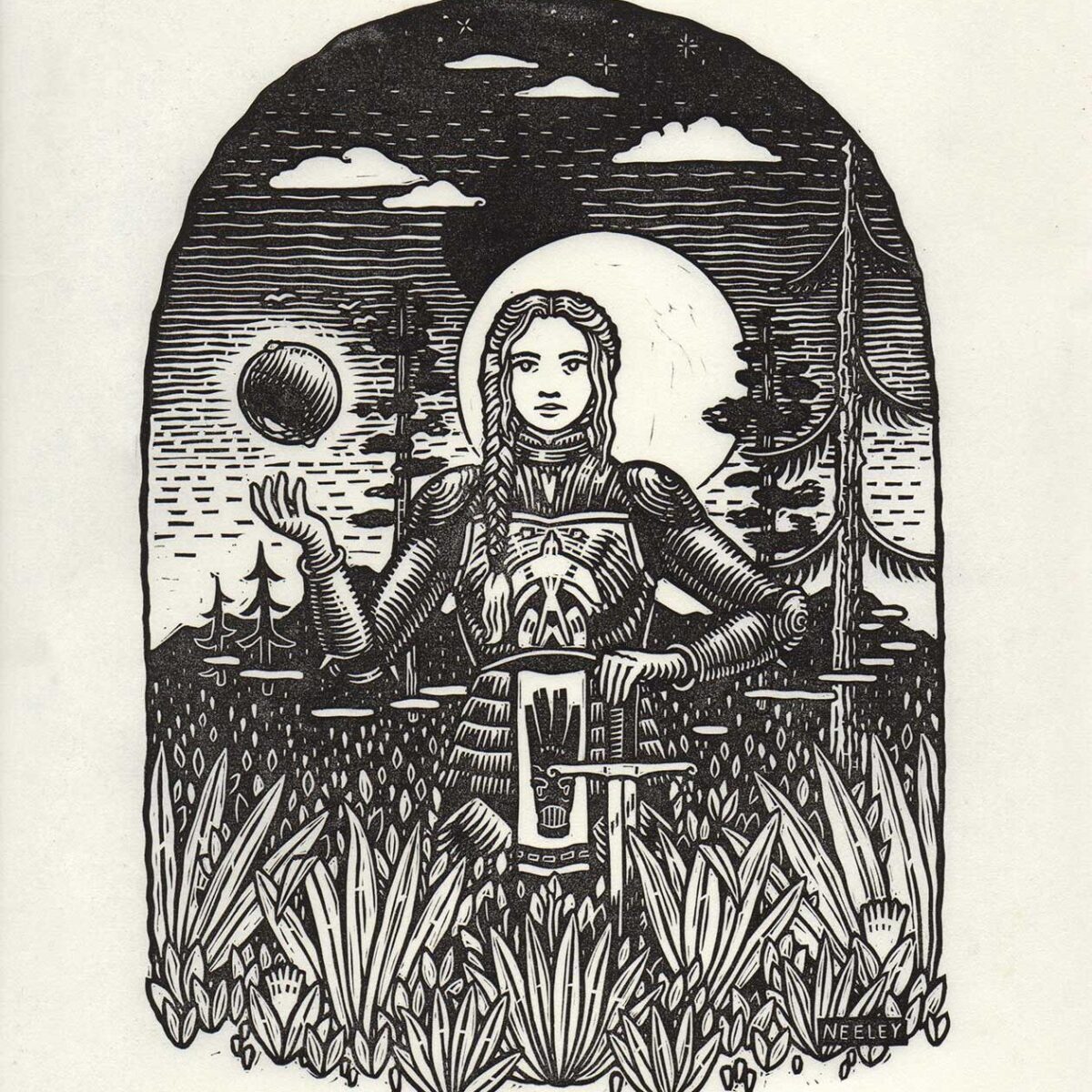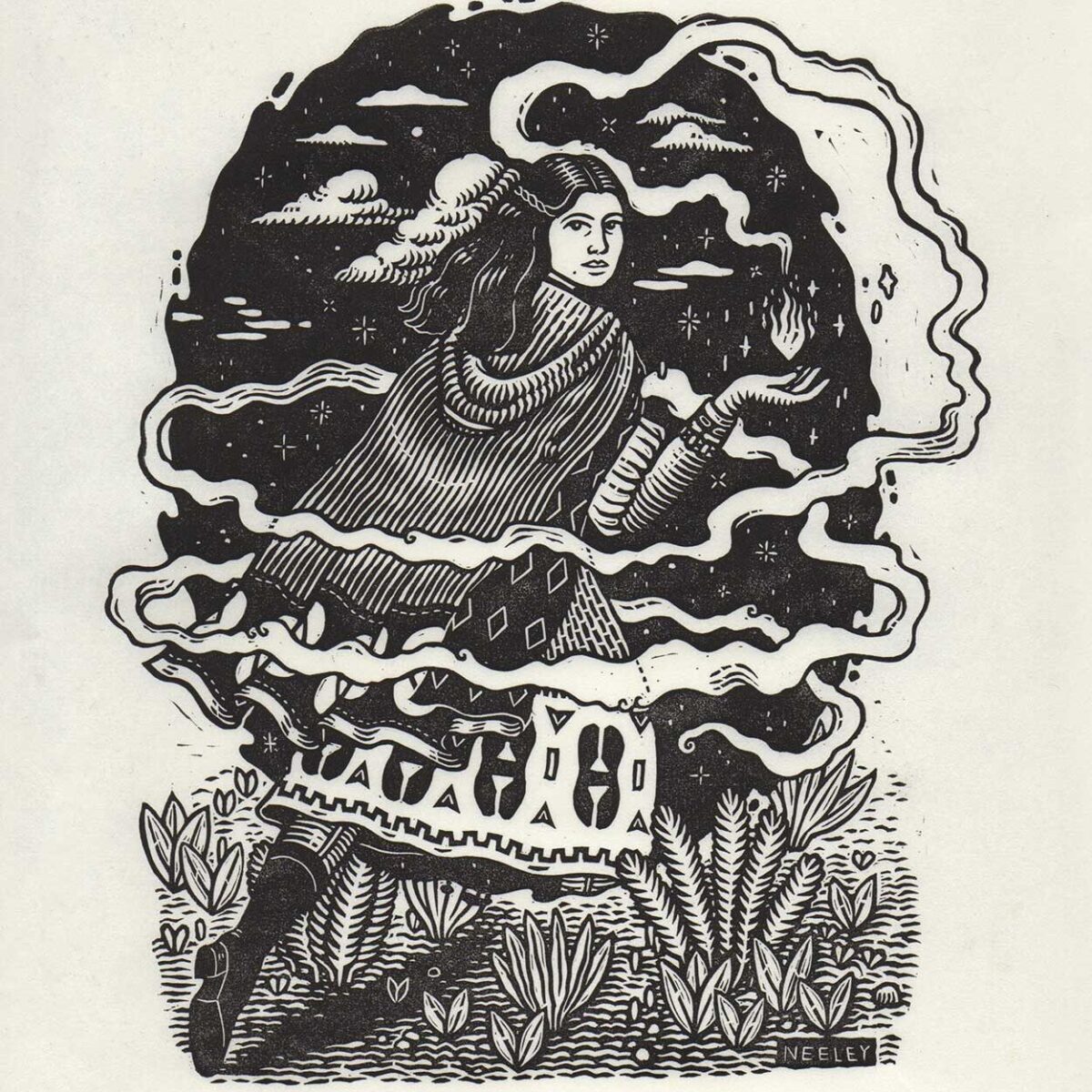 Kathleen Neeley is a Tulsa-based artist specializing in relief printmaking and illustration. She received a Bachelor of Fine Arts and Master of Arts from the University of Oklahoma.