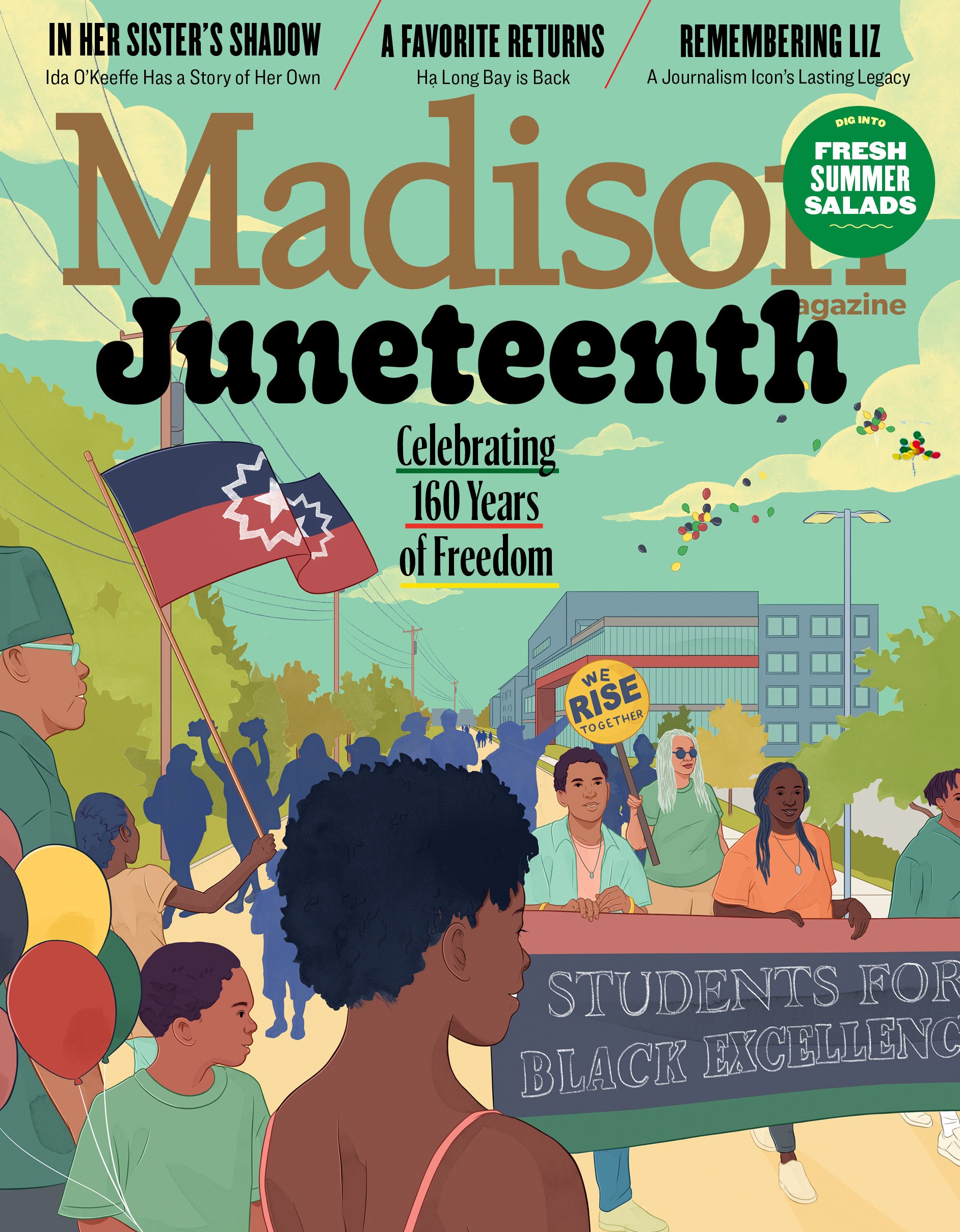 Stephanie Singleton illustrated the June cover for Madison Magazine celebrating the 160th anniversary of Juneteenth, highlighting the resilience and unwavering pride of a Black community still rising.