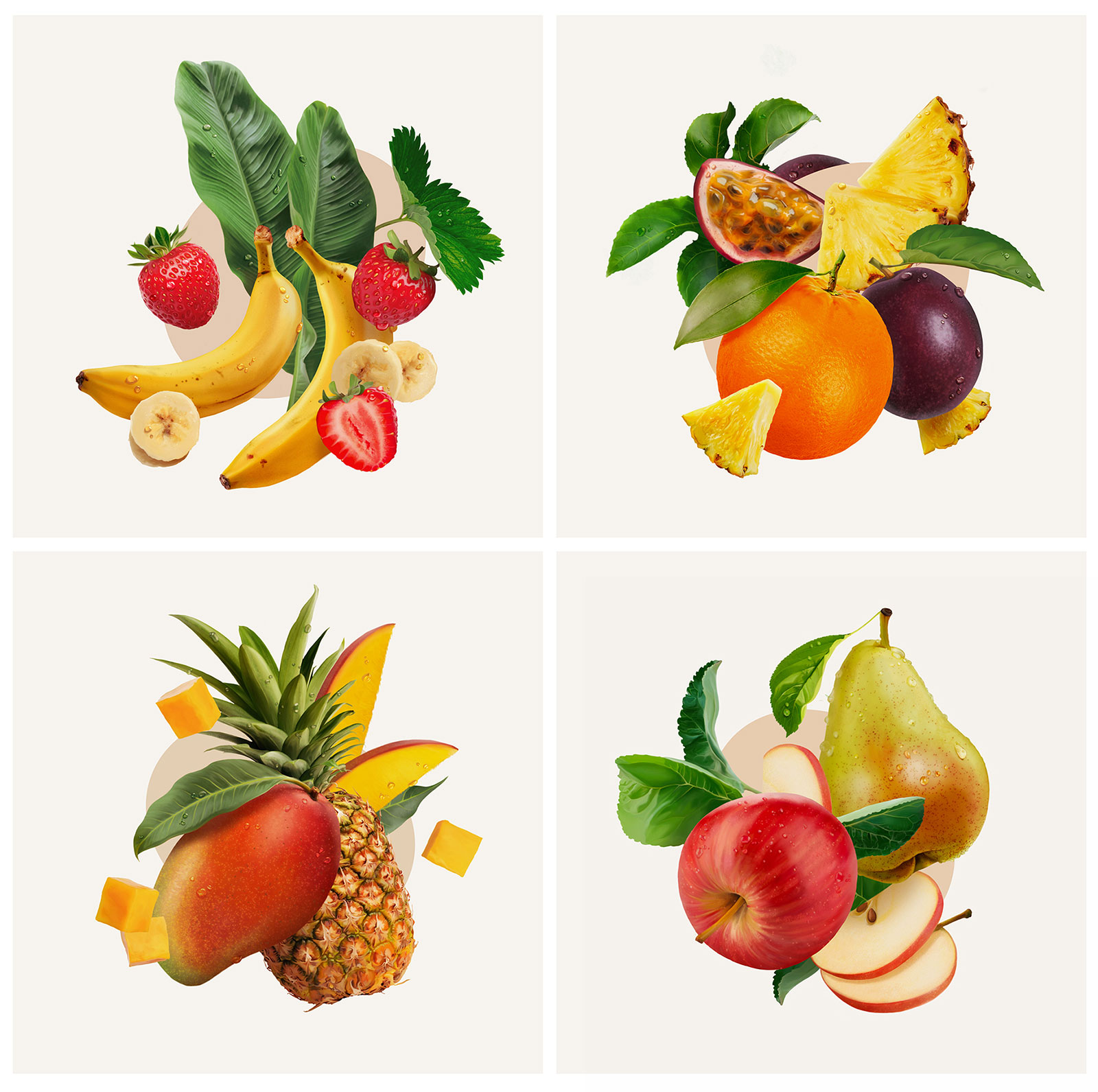 Annick Poirier worked on a packaging project with French multinational food company Andros, which specializes in fruit products, frozen desserts and confectionery. Annick created juicy packaging illustrations for the rebrand of their fruit sauce product, Plaisir de Fruits.