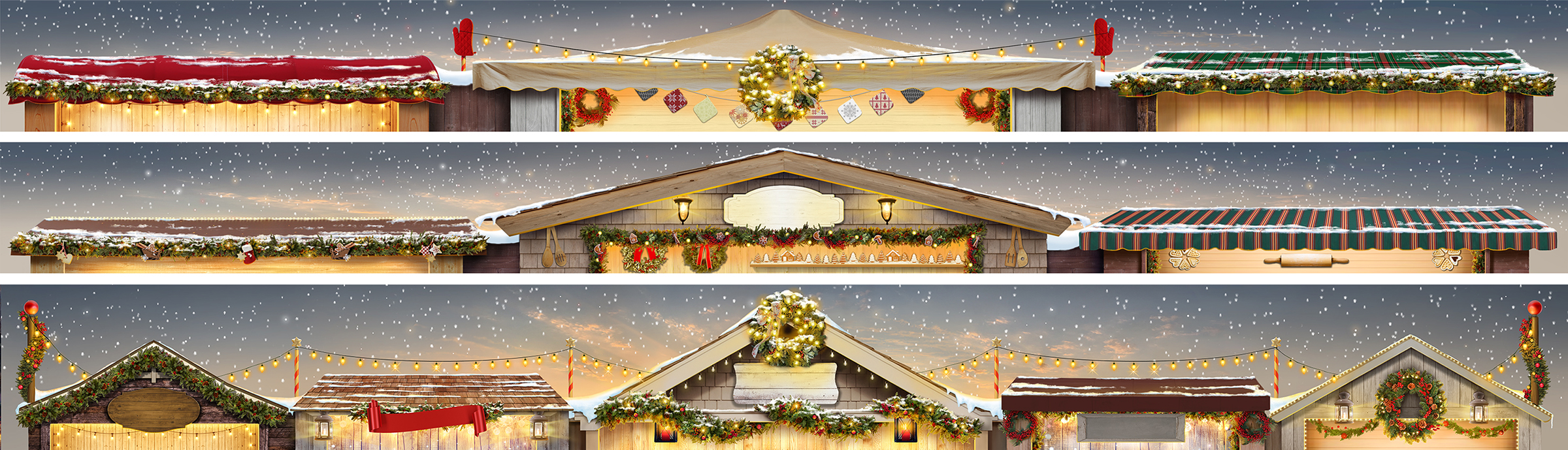 Julia Green created festive scenes for Meijer, the grocery store company for their annual holiday and seasonal displays such as Christmas or summertime. The illustrations were created as long strips to be used on top of the displays.