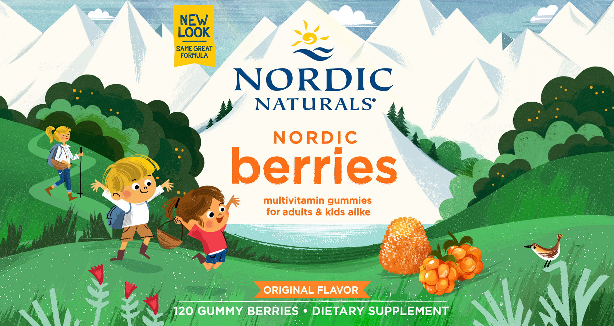 Lucia Gaggiotti has begun a series of illustrations for the redesigned packaging of Nordic Naturals’ line of supplements for children. Her outdoor scenes and lively characters reference Nordic’s naturally sourced ingredients and kid-friendly formulas.