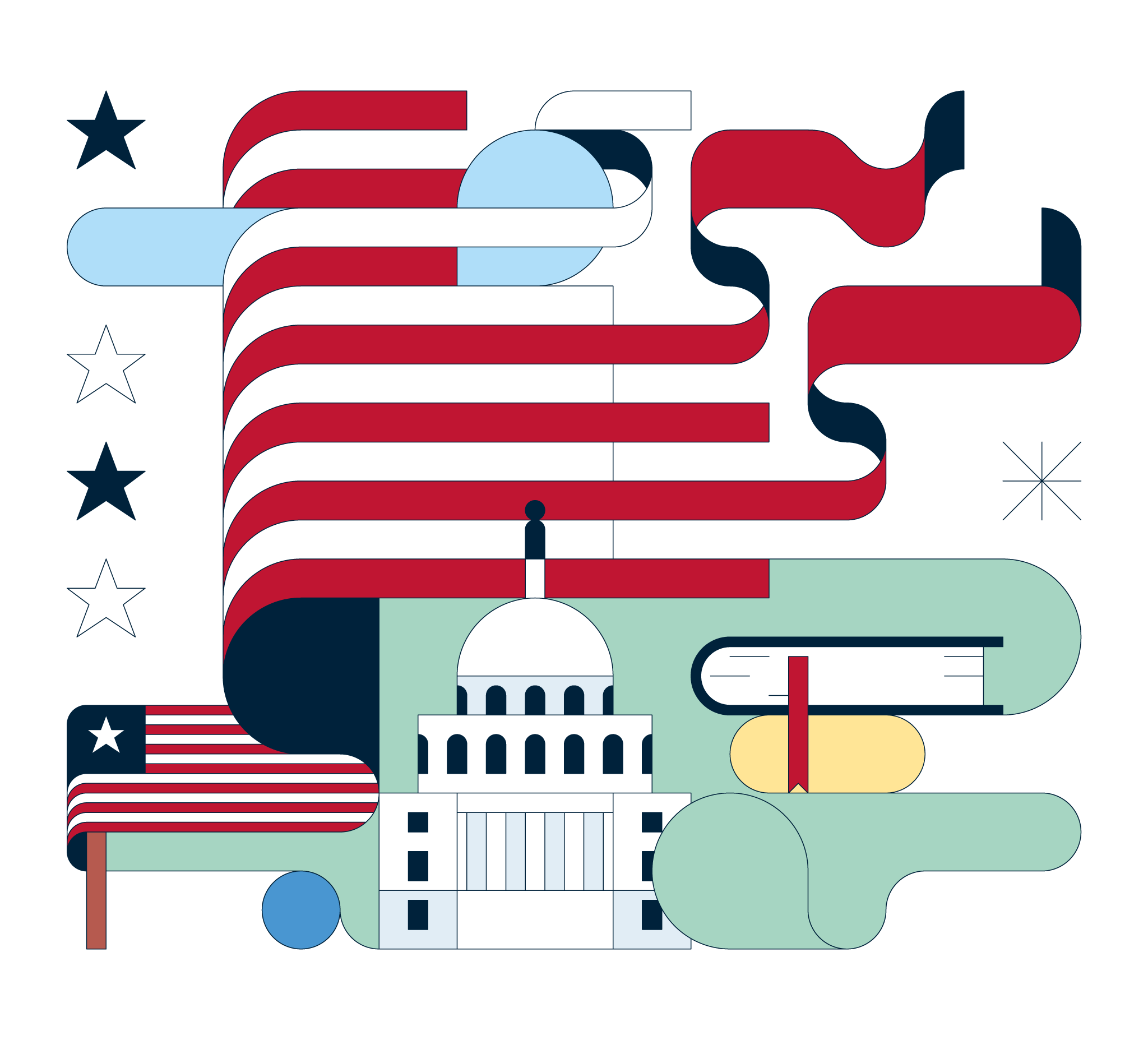 BlindSALIDA was commissioned to illustrate The Wall Street Journal’s Best Books of the Year, creating vector images for the cover, headers for different categories, and a lettering piece spelling 2025 out of books.