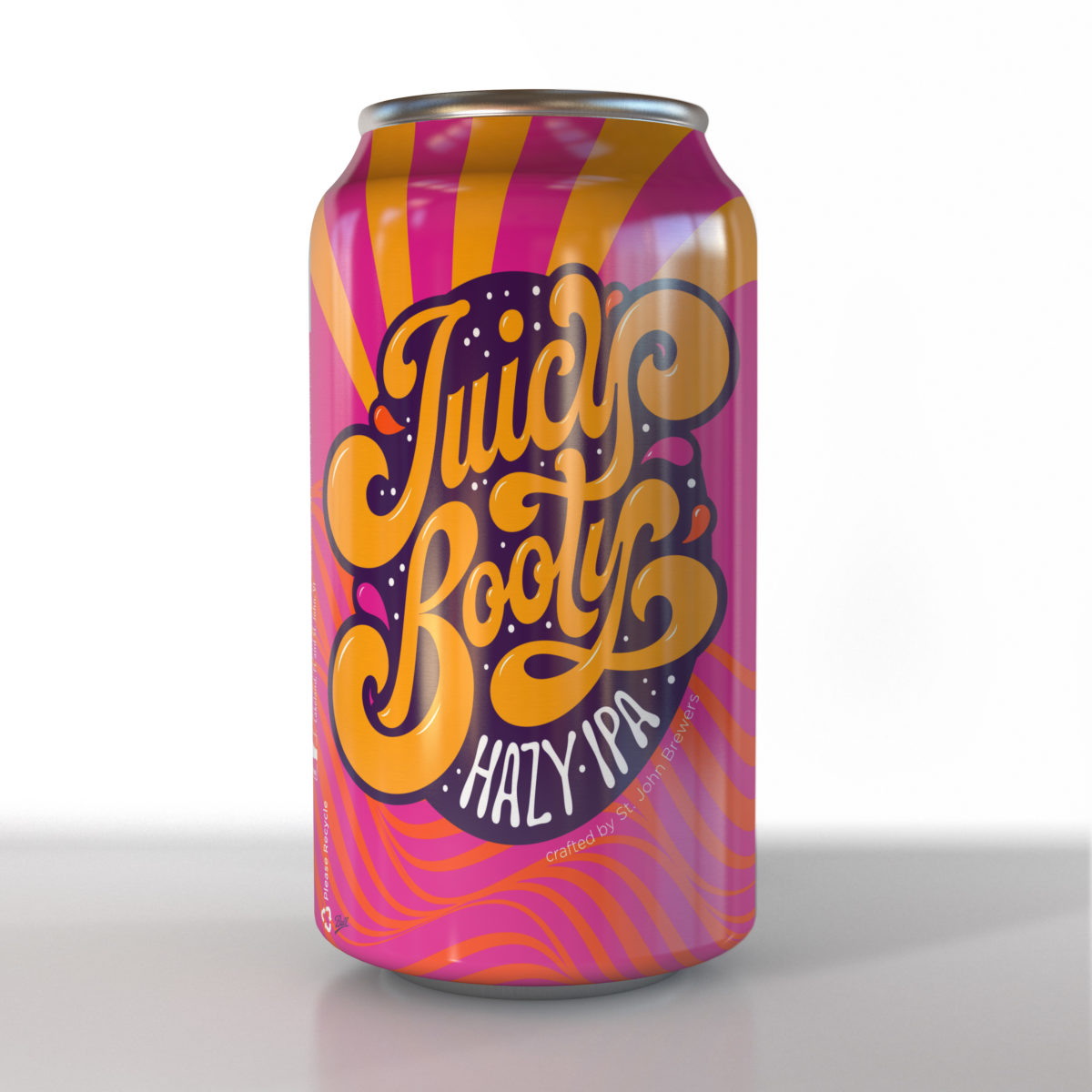 Luke Lucas collaborated with Three Needs Creative to design this psychedelic label art for Virgin Island’s St. John Brewers Juicy Booty Hazy IPA.